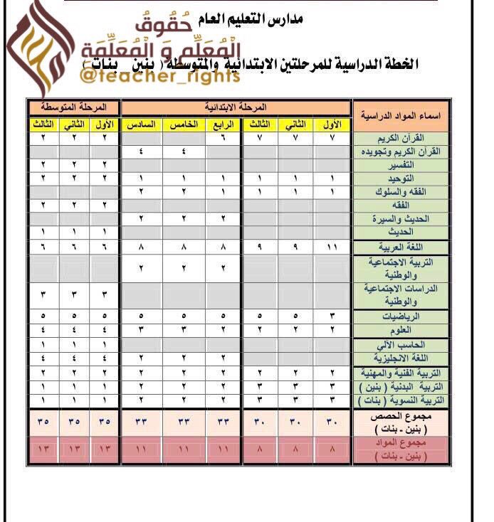 لطيفة الدليهان On Twitter خطة المواد الدراسية للمرحلة المتوسطة
