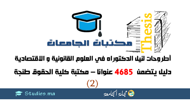 دليل أطروحات لنيل الدكتوراه متوفرة بكلية العلوم القانونية والإقتصادية والاجتماعية بطنجة 4685 عنوانا الجزء 2