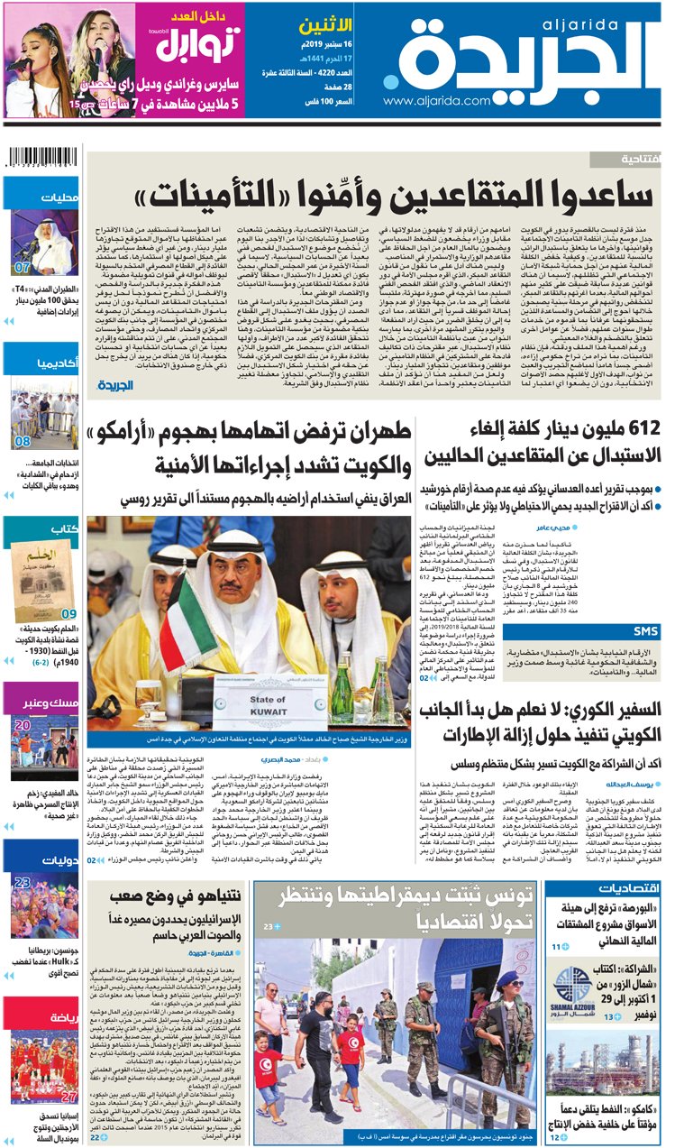 الجريدة On Twitter عدد الجريدة الأثنين 16 سبتمبر 2019 Https T